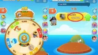 以“海盗来了”为例,这个小游戏只需要玩家不停的转动转盘,累积金币即可建造海岛,同时也可以在转到大炮时对其他玩家建造的海岛进行攻击。