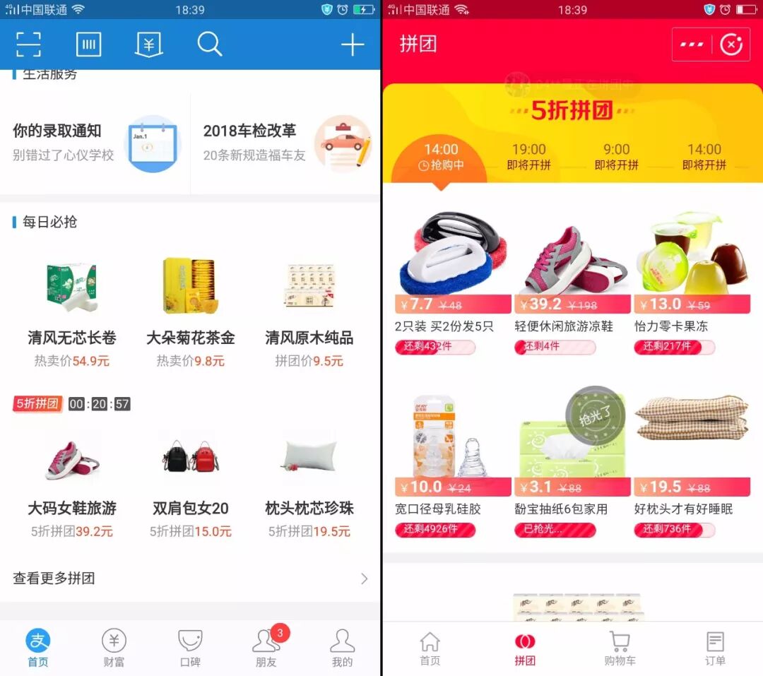 所以如今支付宝小程序做了“每日必抢”,更是获得了支付宝首页的超级流量入口,但目前网上却没有多少人认为它会干掉拼多多。为什么?因为裂变需要的社交环境这一块在支付宝来说还是比较缺失的。