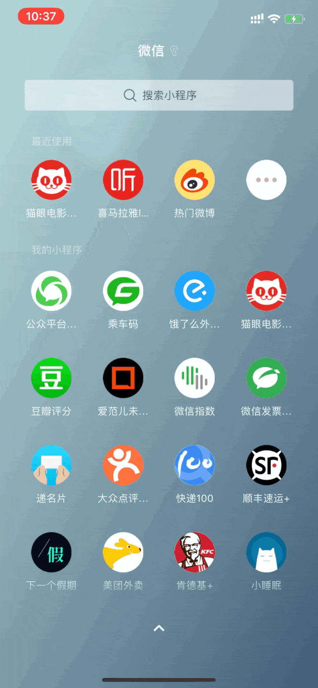 在确定了你需要什么样的小程序常驻首屏之后,你需要去「发现」-「小程序」中找到对应小程序,并一一星标(星标即添加到「我的小程序」),星标完成后,在首屏下拉即可发现,你的微信「效率启动器」已经打造好了。