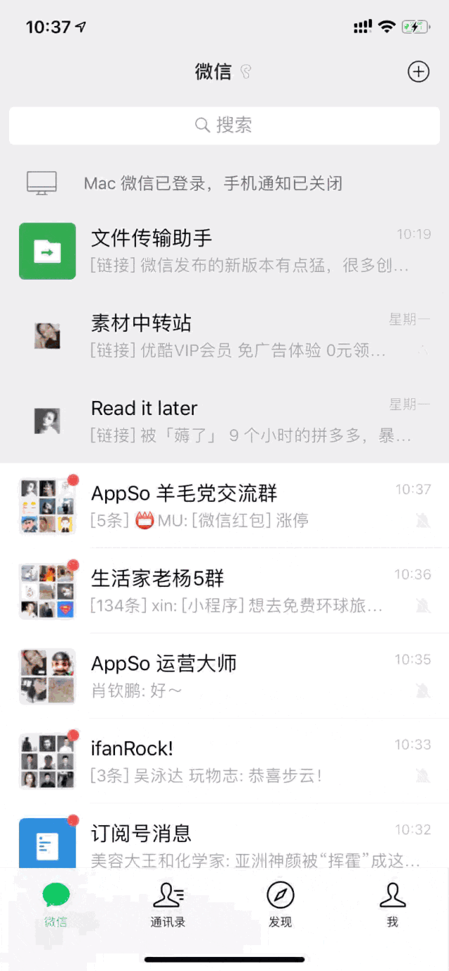 首先,最重磅的就是打开微信首屏界面,下拉即可全屏显示「最近使用」的小程序和「我的小程序」。同时,在这个界面中你可以长按调整「我的小程序」的位置以及删除小程序。除此之外,你也可以通过长按「最近使用」小程序并拖动到「我的小程序」列表中,来将该小程序添加到「我的小程序」。在这个下拉页面的基础上,再下拉一次则会显示「搜索小程序」的搜索栏。在这里你可以直接搜索并打开微信小程序。如果你仔细观察的话,可以发现这个下拉页面的背景其实是一个动态图片,白色的泡沫(光斑?)会不断地缓慢移动。想要回到聊天界面?点击 一下底部的向上按钮即可,目测还不支持上滑回到聊天界面。在 7.0.3 版本微信中,领到红包之后可以快速回复一个表情包。并且在一次设置后,微信红包会记住你的设置,之后再领红包,直接点击发送即可,不用再设置表情。在上一次更新(7.0.0)中,微信公众号底部的「赞」首次被改成了「好看」,如果你阅读公众号文章后点击「好看」,该文章就有可能推荐到好友的「看一看」信息流中。在 7.0.3 版本中,除了文章底部外,你还可以点击右上角的「…」,给文章点个「好看」。